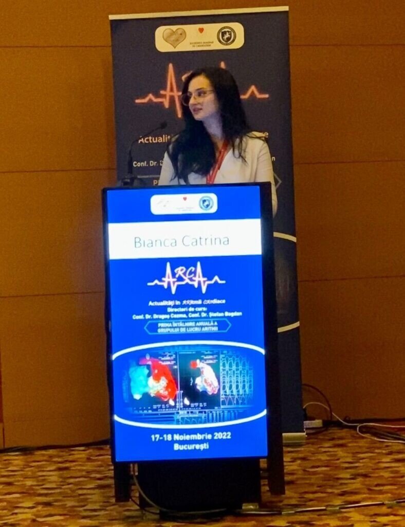 În cadrul manifestării științifice, Dr. Catrina Bianca a prezentat activitatea de aritmologie – electrofiziologie desfășurată în cadrul laboratorului spitalului județean și a discutat despre noile tehnici de implant utilizate. Astfel, SCJU Sibiu se aliniază în rândul spitalelor care desfășoară activități complexe de implant de dispozitive cardiace, obținând recunoaștere la nivel național pentru activitatea prestată.