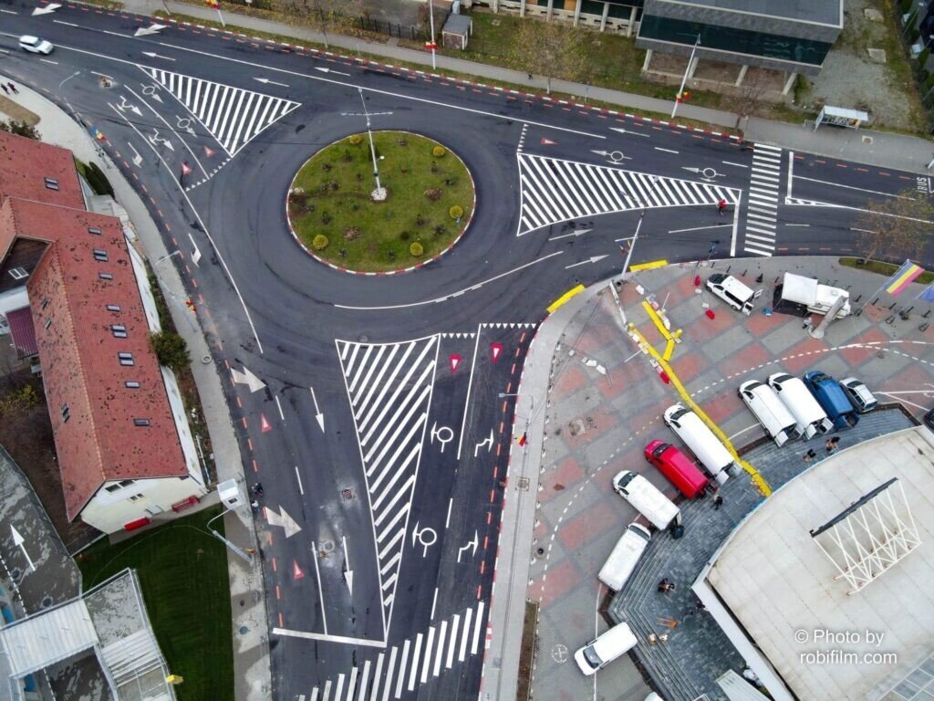 Modernizarea Stadionului Municipal Sibiu a implicat și reconfigurarea sensului giratoriu situat la intersecția străzilor Nicolaus Olahus și Octavian Goga.