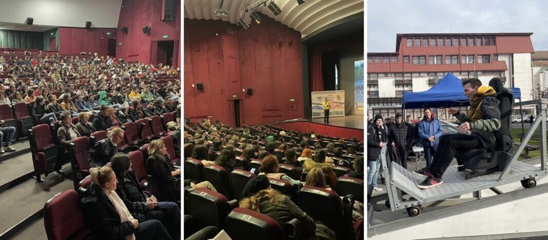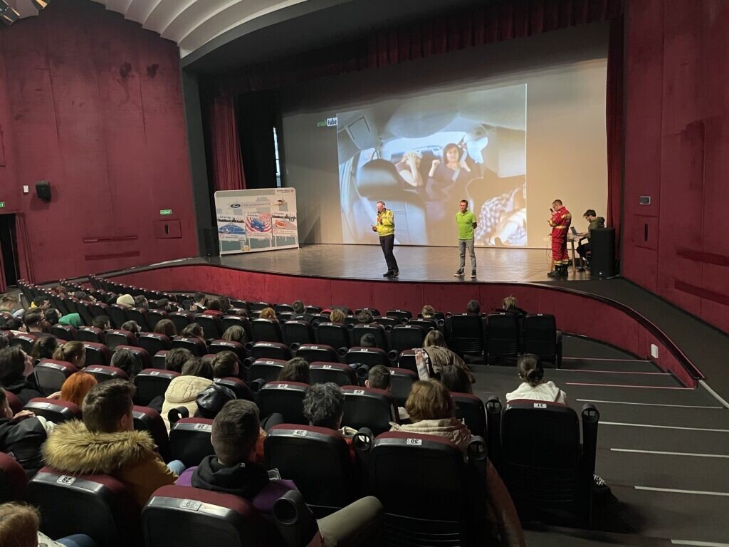 De asemenea, după sesiunea de proiecție, elevii au avut parte de un mic curs de prim-ajutor, în care le-au fost prezentate procedurile de resuscitare, dar și modul în care trebuie să gestioneze o situație de urgență. La final, în colaborare cu Napoca Rally Academy, aceștia au putut simți pe propria piele, utilitatea centurii de siguranță, prin intermediul unui simulator de impact, setat pe o viteză de până la 15 km/h.