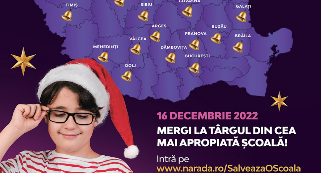 În cadrul campaniei „Salvează o școală”, pe 14 și 16 decembrie, sute de copii se transformă în eroi pentru școala lor alături de NARADA. Peste 20 de persoane publice susțin elevii care devin antreprenori pentru o zi la târguri de Crăciun, pentru a rezolva urgențele din 25 de școli din țară.