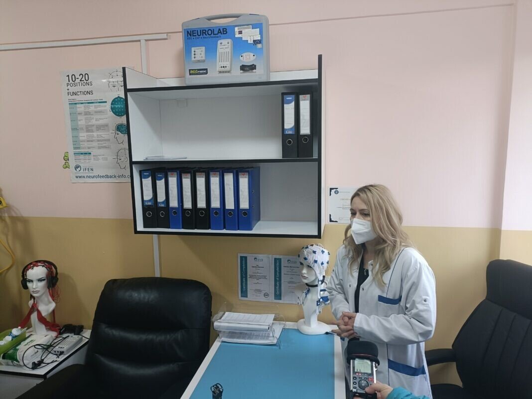 „În primul rând este vorba despre o tehnologie nouă pentru România, ea are o vechime de peste 50 de ani în lume, dar acum am preluat-o şi la noi, neurofeedback se numeşte. Este o modalitate de terapie, de antrenament cerebral, non-invazivă, care se poate personaliza pentru pacient şi care presupune reglarea activităţii cerebrale, îmbunătăţirea activităţii cerebrale a pacientului pe baza activităţii creierului de a se reconfigura, numim asta neuroplasticitate. Intervenţia este sigură, este susţinută de studii clinice randomizate. Asta încercăm să facem şi noi aici, să studiem ca să aducem şi contribuţia asta alternativă medicaţiei, fie complementară tratamentului. (…) Pacientul doar trebuie să stea relaxat, se şi întinde acest fotoliu, se uită la un ecran pe care primeşte feedback viziual în funcţie de activitatea creierului său. (…) Practic creierul învaţă ce ar avea de făcut ca să funcţioneze mai bine”, a explicat Gabriela Marcu.
