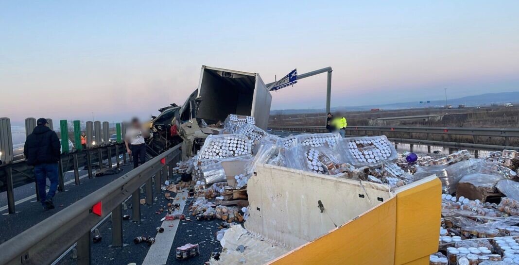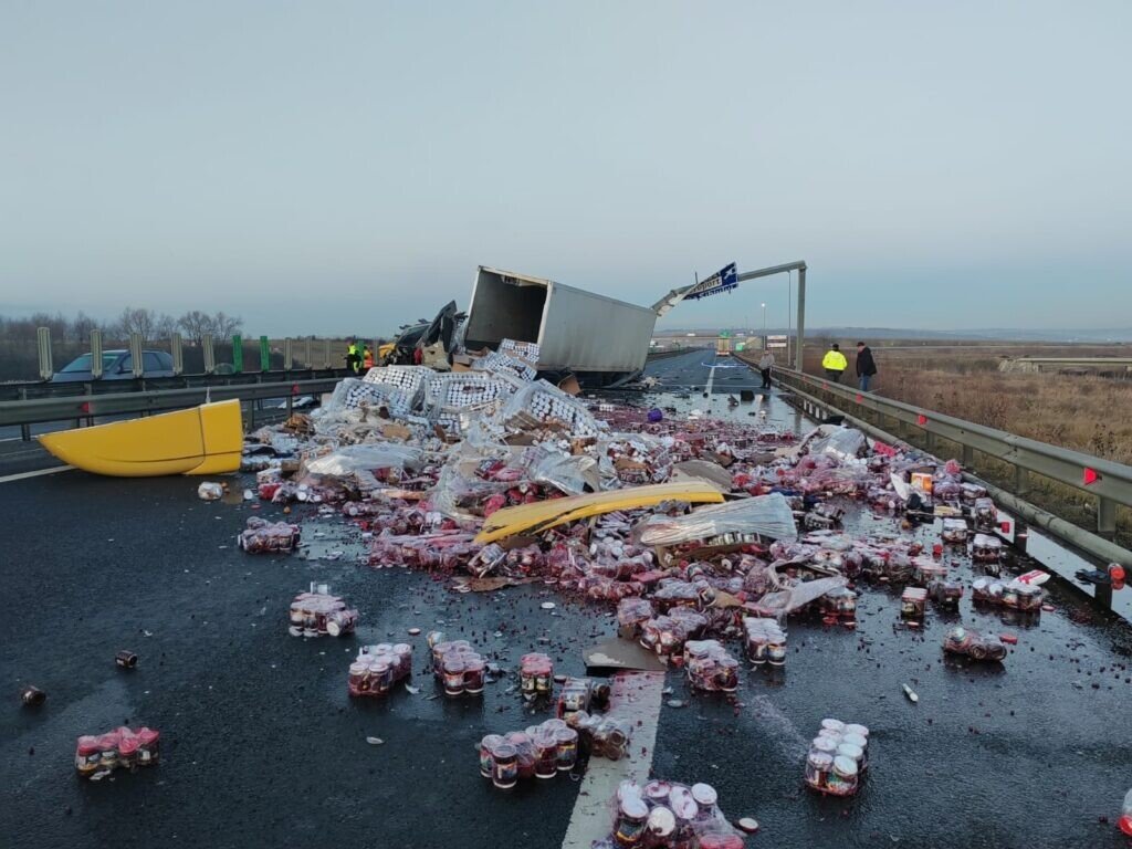 Un accident grav de circulație s-a produs în urmă cu puțin timp pe autostrada A1, Sibiu – Sebeș, la km. 254, între ieșirea spre Aeroport și Cristian. Din primele informații, un autocamion a lovit parapeții iar marfa acestuia s-a răsturnat pe carosabil.