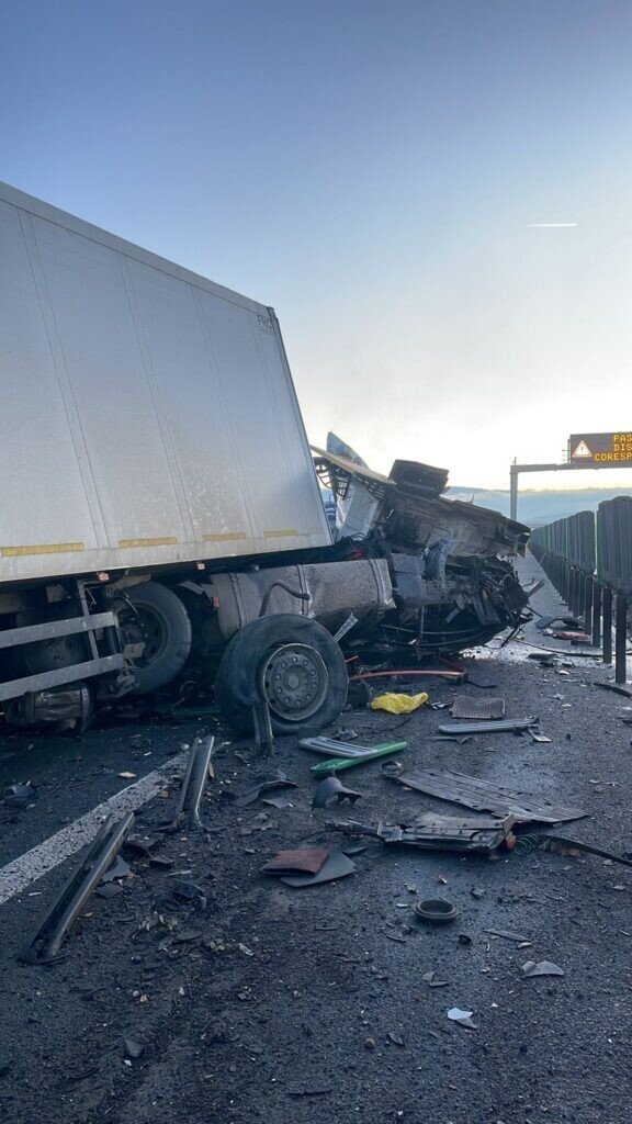 La fața locului intervin mai multe ambulanțe Smurd, dar și echipaje de Poliție. Conform martorilor, șoferul autocamionului este încarcerat și decedat. Din primele cercetări, șoferul unui ansamblu tir condus spre Nădlac a pierdut controlul direcției de deplasare, a lovit glisiera mediană și s-a oprit pe contrasens. Bucăți din parapet au acroșat un alt vehicul condus pe sensul opus. Conducătorul auto este un bărbat în vârstă de 49 de ani, din județul Teleorman.