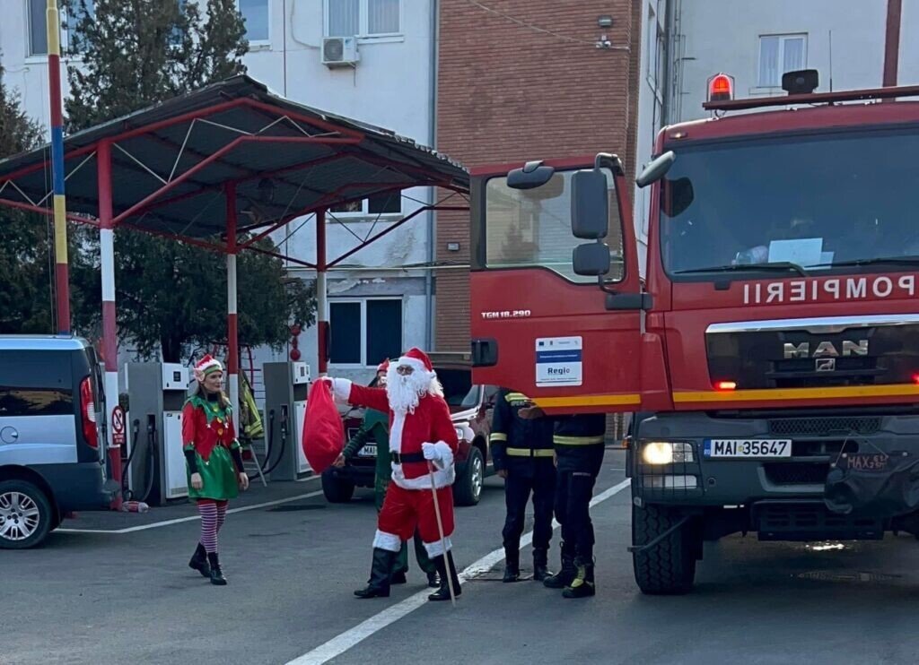 Vizită inedită la ISU SIBIU! Moș Crăciun a poposit la sediul pompierilor, în cadrul unui proiect magic de schimb de experiență.