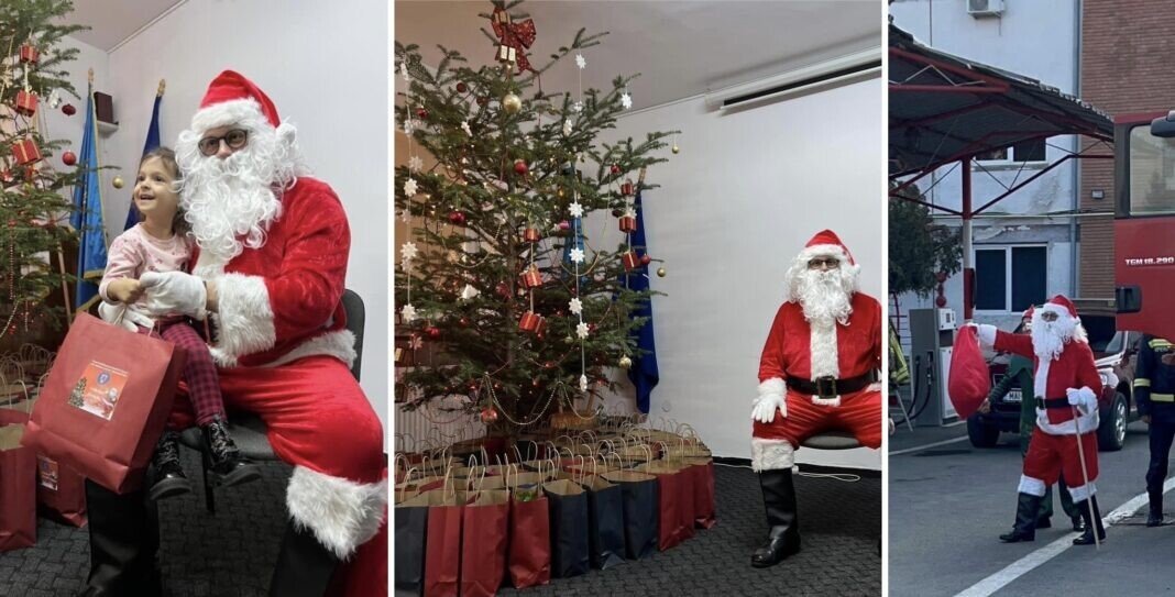 Împreună cu ajutoarele lui, au împărțit daruri pentru copii pompierilor sibieni și au primit în schimb, multe zâmbete!