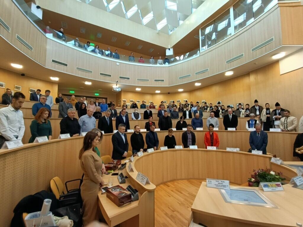După frumosul program artistic interpretat de Junii Sibiului, Daniela Cîmpean, președinta Consiliului Județean Sibiu i-a rugat să cânte „La mulți ani” pentru consilierii care își aniversează ziua în luna decembrie. Aceasta este o tradiție la Consiliul Județean la fiecare ședință lunară, când, la început se urează „La mulți ani” consilierilor aniversați.