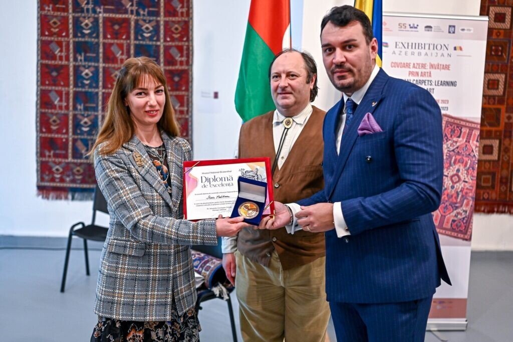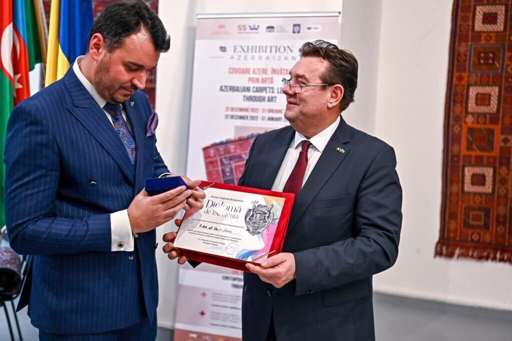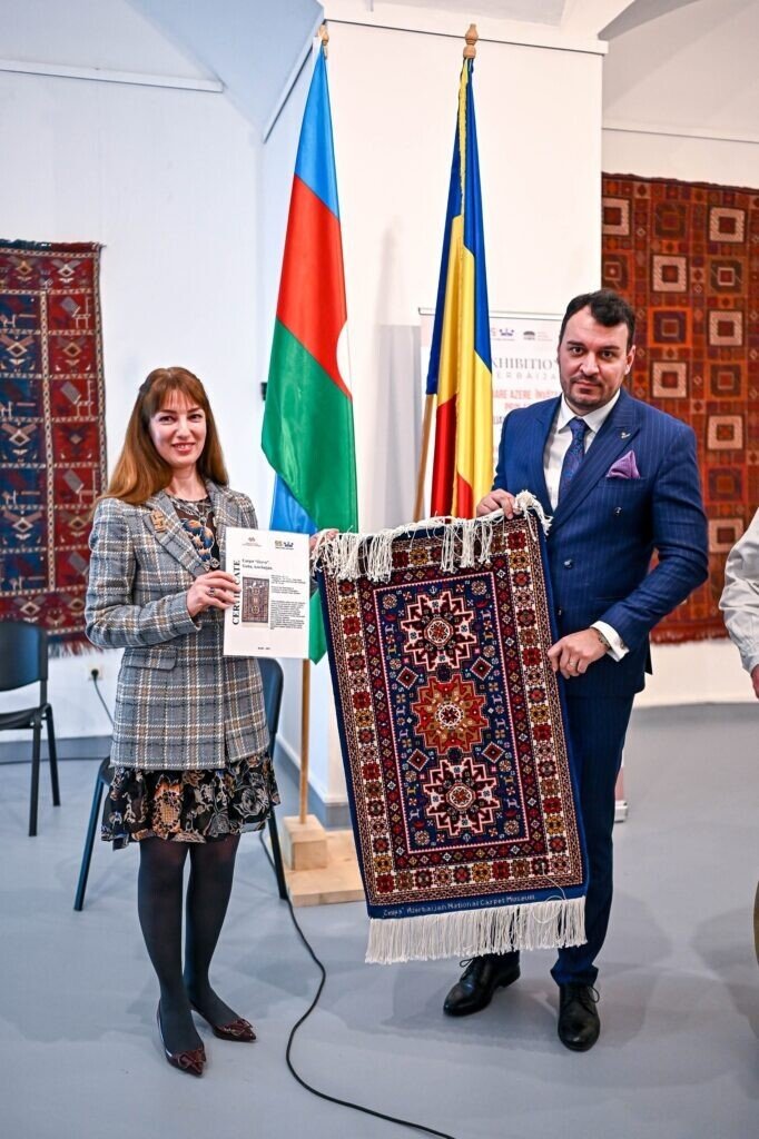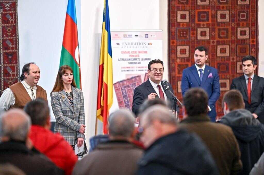 În cuvântul de deschidere, domnul Alexandru Constantin Chituță, manager interimar al Muzeului Național Brukenthal a subliniat faptul că: ”Este o onoare pentru noi, aici în centrul României, la Muzeul Național Brukenthal să găzduim prima expoziție de covoare azere realizată în România și adusă din capitala Azerbaijanului de la Baku. Este o expoziție organizată cu prilejul împlinirii a 30 de ani de relații diplomatice România – Azerbaijan și doresc să mulțumesc pentru implicarea continuă a Excelenței Sale, domnului ambasador Vasile Soare. Pe lângă aceste covoare extraordinare expuse aici, în acest spațiu al Muzeului de Artă Contemporană care a suferit în ultima vreme câteva lucrări administrative de stilizare și modernizare, avem din nou o premieră la Sibiu, la Muzeul Național Brukenthal și în România. Este prima expoziție care, pe lângă aceste covoareexpuse în premieră în România, are o parte cu modele ale covoarelor vechi realizate special pentru nevăzători. Atingându-le înțeleg ce modele sunt pe aceste covoare. Există etichete și texte de sală în alfabetul braille. În plus, într-o cameră alăturată avem un atelier de proiecte educative cu copii, unde cei mici vor înțelege și vor realiza mici covoare colorate. În prag de Sărbători avem un cadou pe care îl facem vizitatorilor și sibienilor. Mulțumesc pentru această colaborare domnului ambasador Vasile Soare și doamnei director Shirin Melikova de la Muzeul Național al Covorului din Baku. Sunt oameni extraordinari. Suntem prieteni iar colaborarea noastră va continua și în viitor cu un proiect de studiere, cercetare și publicare a colecției de covoare din Muzeul Brukenthal.”