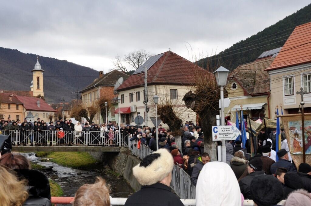 Procesiunea a traversat satul cu praporii purtați înaintea credincioșilor. Preoții din sat s-au pus în genunchi la râu pentru a sfinți aghiasma mare. O slujbă religioasă a avut loc în centrul comunei la care a participat și primarul Bogdan Bucur.