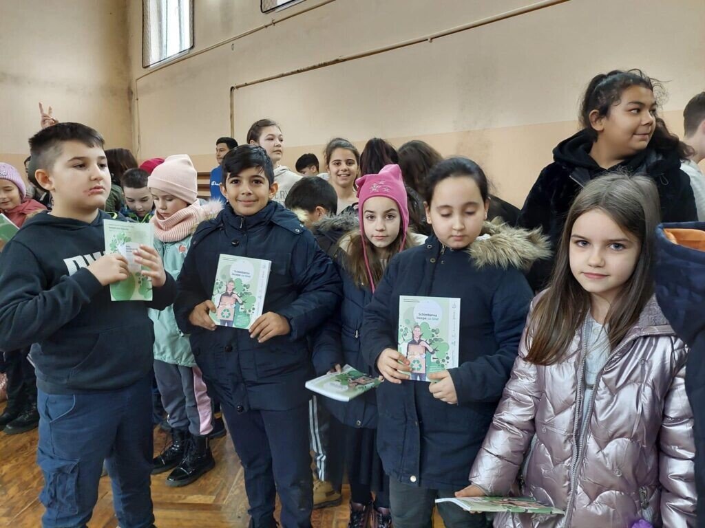 Caietele din hârtie reciclată au ajuns în casele tuturor celor aproximativ 200 de elevi, care au fost curioși să ne cunoască și să afle informații noi și curiozități în colectarea selectivă.