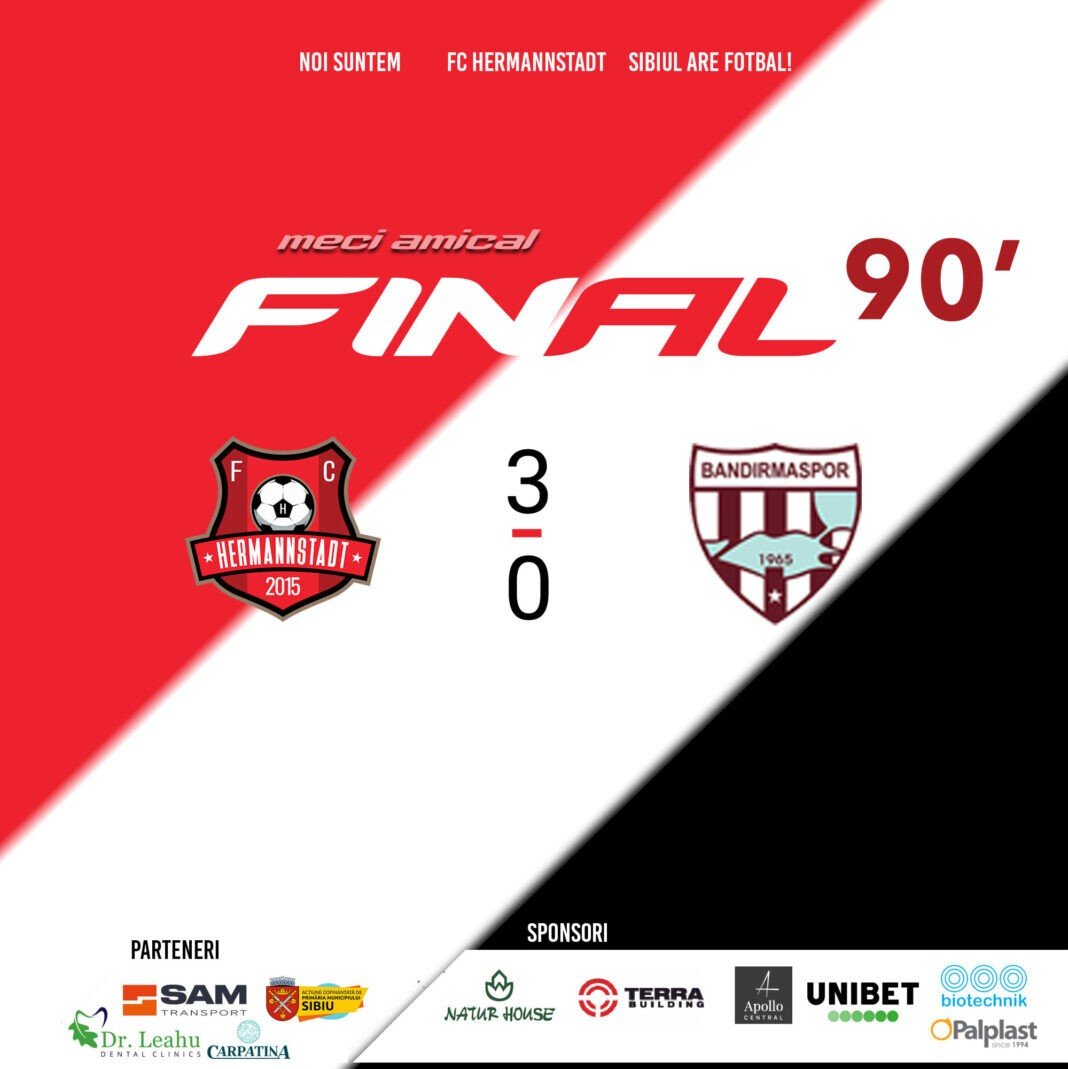 Astăzi s-a jucat pe Arena Fanatic din Antalya partida dintre Hermannstadt și Bandirmaspor (locul 5 în liga secundă turcă).