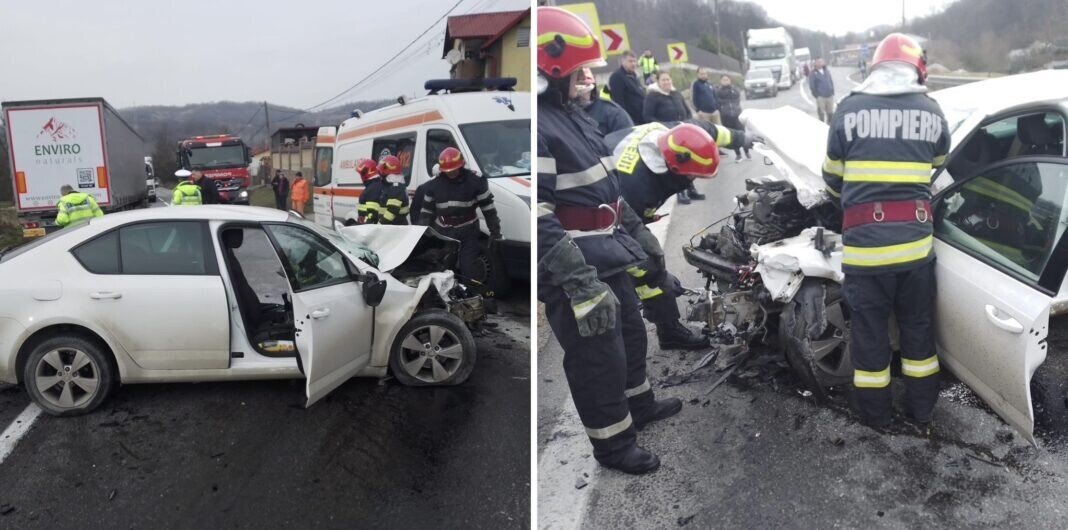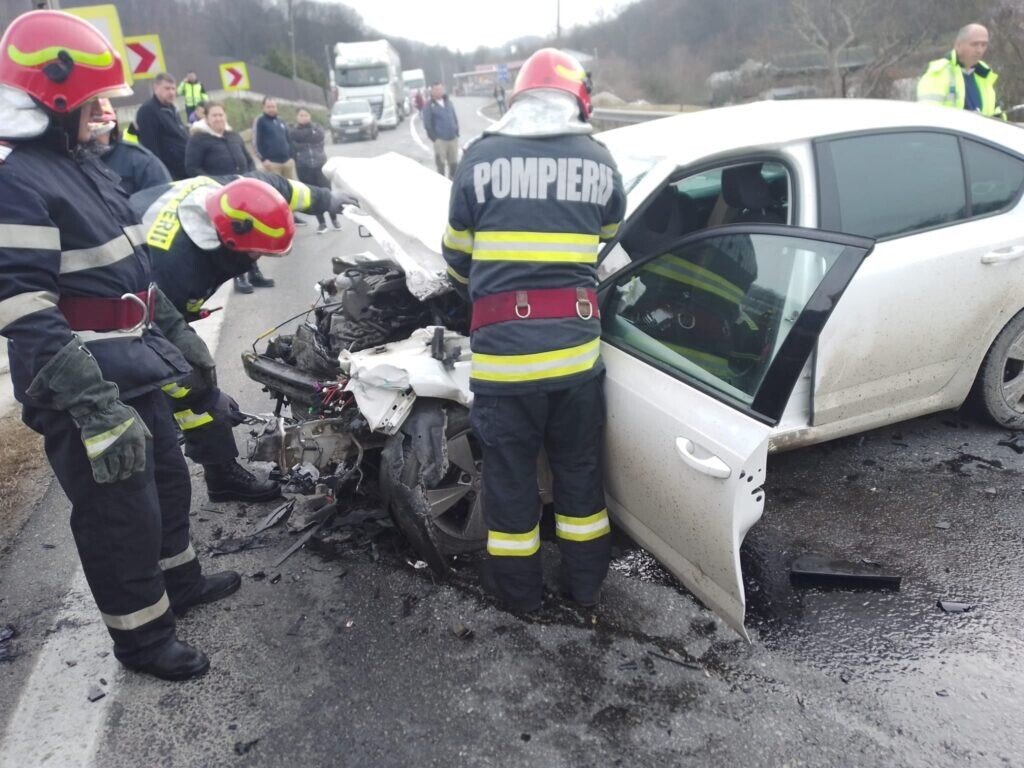 Traficul rutier este blocat total pe DN7, în localitatea Blidari, după ce o mașină a intrat în colizine cu un autocamion.