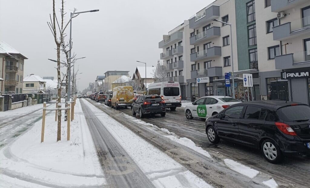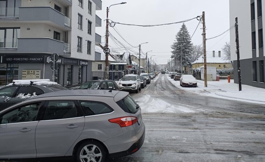 Traficul se desfășoară bară la bară pe panta Cristian din cartierul Ștrand. Multe mașini rămân blocate! Problemele sunt raportate și pe alte străzi din municipiul Sibiu.