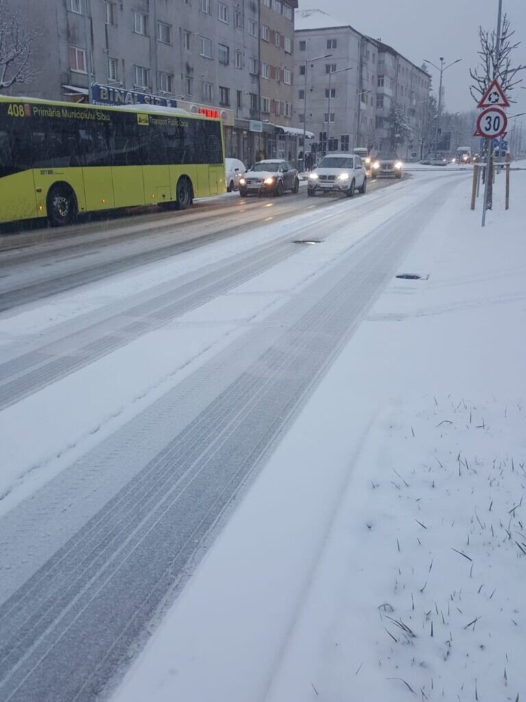 A venit mult dorita iarnă, pentru copii și amatorii sporturilor de iarnă. Pentru șoferi însă, a venit coșmarul alb. Străzile municipiului Sibiu sunt pline de coloane de mașini.