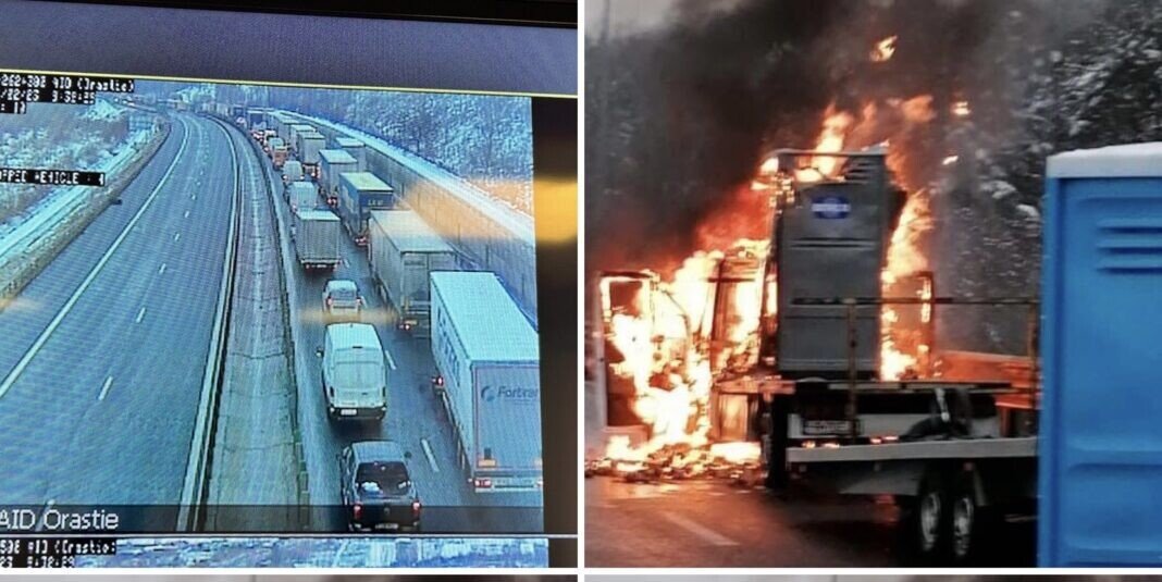 FOTO: Incendiu pe autostrada Sibiu- Deva. Traficul rutier este afectat!
