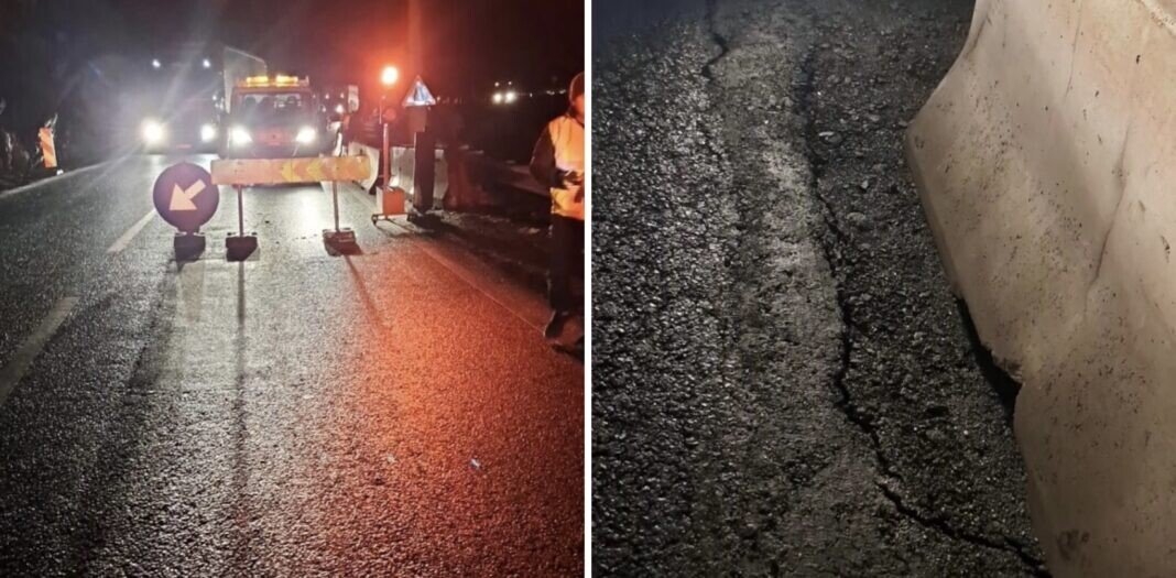 Fisurile părții carosabile au apărut pe acostamentul sensului Vâlcea – Sibiu.