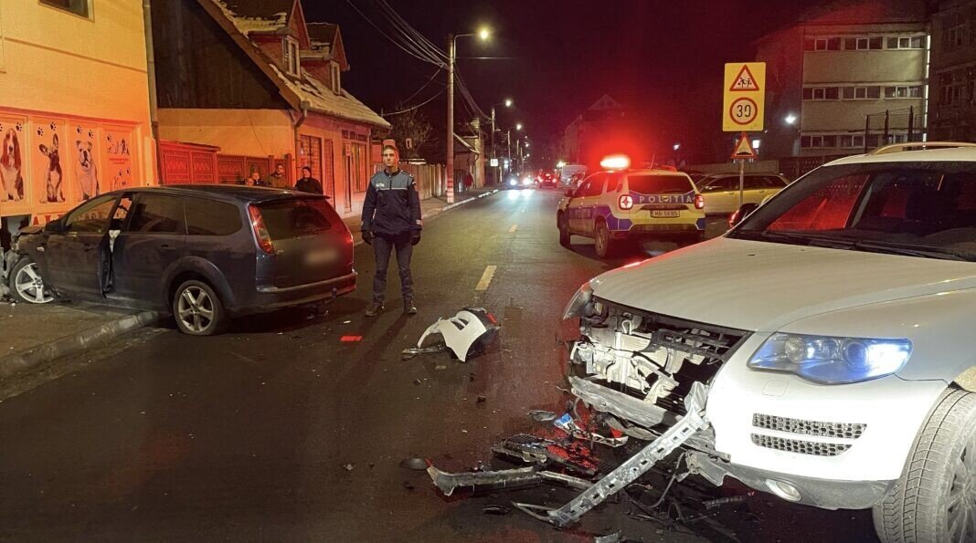 Două mașini au intrat într-o coliziune violentă pe strada Vasile Aaron din Sibiu. Din primele informații, una dintre mașini rula cu viteză excesivă.