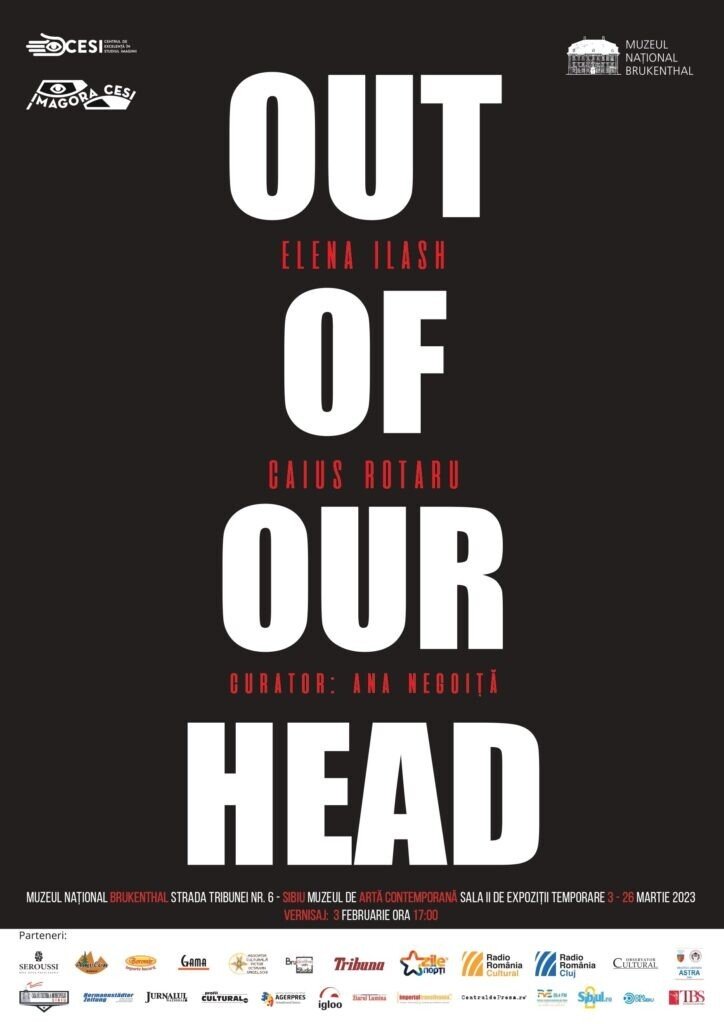Muzeul Național Brukenthal Sibiu are onoarea de a vă invita vineri, 3 februarie 2023, ora 17:00 la vernisarea proiectului expozițional Out of our head realizat de artiștii Elena Ilash și Caius Rotaru. Expoziția va fi deschisă la sediul Muzeului de Artă Contemporană situat pe strada Tribunei numărul 6 și va putea fi vizitată până în 26 martie, de miercuri până duminică în intervalul orar 10:00 – 18:00.
