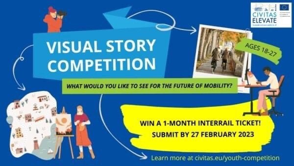 Continuându-și misiunea, Civitas lansează concursul dedicat tinerilor numit VISUAL STORY, provocându-i să împărtășească viziunea lor asupra mobilității în imagini (foto sau video). Vor fi selectați cinci câștigători care vor primi ca premiu un abonament Interrail valabil pe o lună și care le va permite să călătorească gratuit cu trenul în 33 de țări europene. Înscrierile în concurs se pot face până în 27 februarie 2023.