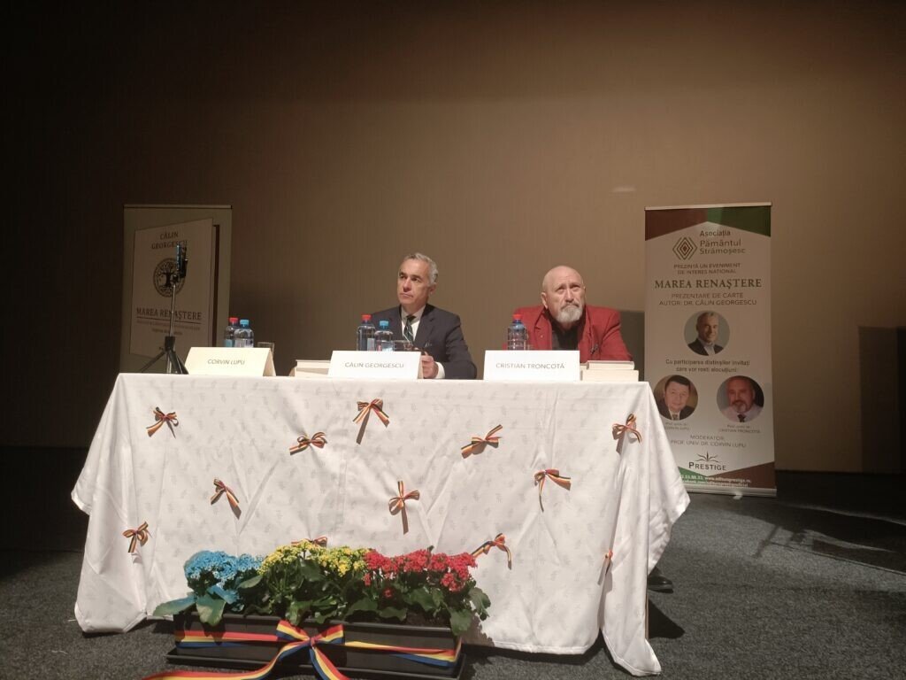 Aproape 200 de persoane au participat sâmbătă la lansarea la Sibiu a cărții Marea Renaștere – ieșirea din Matrix, scrisă de Călin Georgescu. La evenimentul ținut la Centrul Cultural Ion Besoiu au vorbit, pe lângă autor, prof. univ. dr. Corvin Lupu și prof. univ. dr. Cristian Troncotă, ambii cadre universitare la Lucian Blaga Sibiu specializarea Studii de securitate.