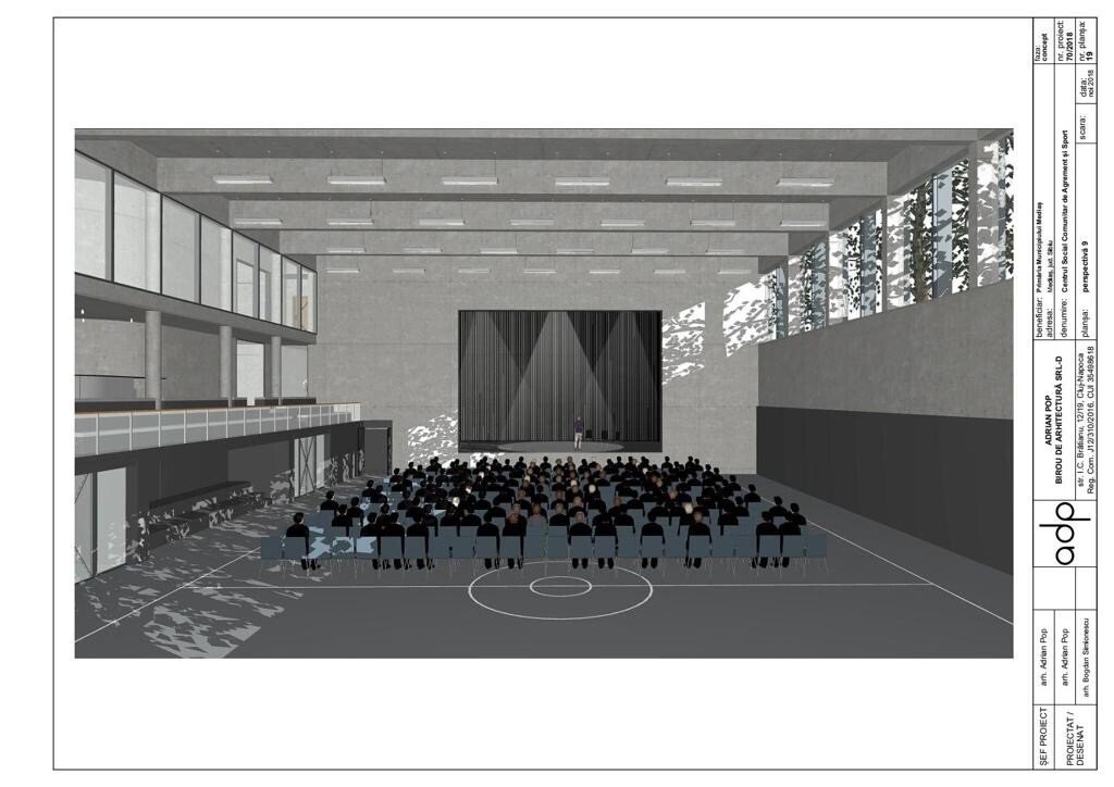 – Construirea unei săli de sport cu capacitate maximă de 265 de persoane, respectiv 200 locuri în gradene;