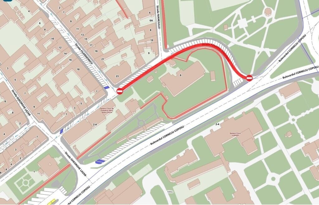 Urmare unei solicitări primite din partea Spitalului Clinic Județean Sibiu, Comisia de Circulație a aprobat restricționarea temporară a circulației pe strada Pompeiu Onofreiu, luni, 27 februarie, între orele 09.30 – 13.00, pe tronsonul dintre bulevardul Corneliu Coposu și str.