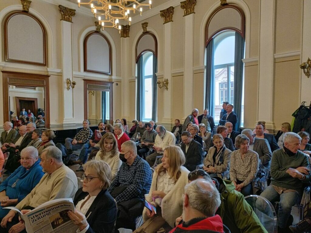 La invitația redactorului șef Beatrice Ungar au răspuns astăzi zeci de colaboratori și prieteni ai ziarului. Sala Oglinzilor de la Forumul German din Sibiu s-a dovedit neîncăpătoare. Fie că a fost vorba de primul redactor șef din 1968, ajuns acum la 91 de ani sau de oficialități ca primarul Astrid Fodor, fostul președinte al Consiliului Județean, Martin Bottesch sau consulul Germaniei la Sibiu, Kerstin Ursula Jahn cei prezenți au lăudat rolul săptămânalului de limbă germană pentru comunitatea germană din România și nu numai.