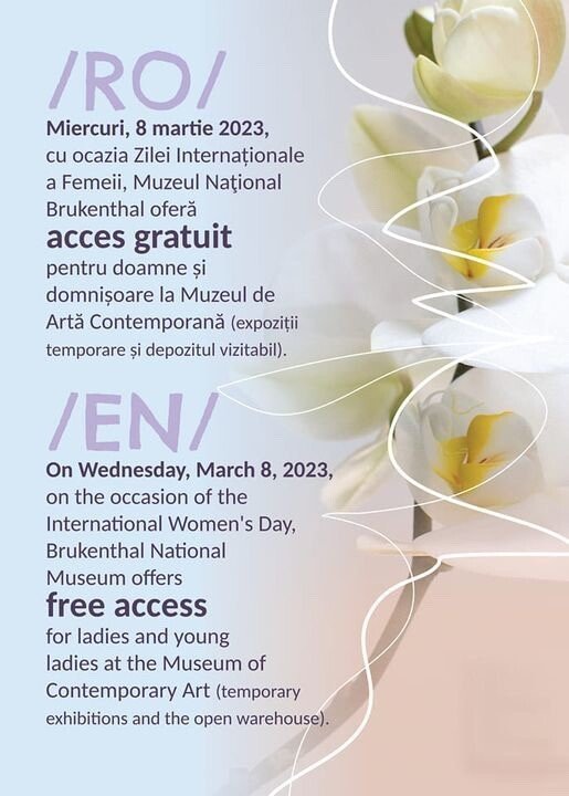 Cu ocazia Zilei Internaționale a Femeii, Muzeul Național Brukenthal oferă ACCES GRATUIT pentru doamne și domnișoare la Muzeul de Artă Contemporană, str. Tribunei, nr. 6. Pot fi vizitate: Depozitul vizitabil și expozițiile temporare: ICONOFERESTRE, artist Marian Furtună și OUT OF OUR HEAD, artiști Elena Ilash & Caius Rotaru.