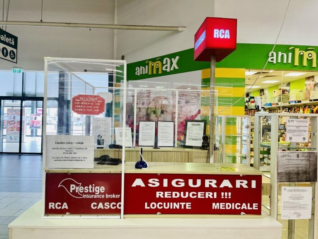 Deschis 7 zile din 7! La standul de Asigurari PRESTIGE INSURANCE din incita Shopping City (mai precis, de pe Galeria Centrului Comercial Auchan, Șelimbăr) oferim clienților noștri, sevicii de consultanță și intermediere în asigurari RCA, și nu numai, la cele mai înalte standarde.
