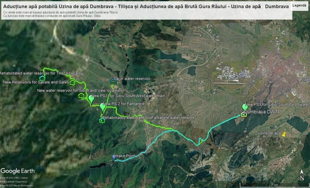 Cl 7- Aducțiune apă brută Gura Râului-Sibiu, Aducțiune apa potabila Sibiu-Săliște /Tilisca” are o valoare de 109.709.365,46 lei fara TVA și prevede reabilitarea conductei de apă care asigură necesarul de apă din Sursa Gura Râului, în scopul potabilizării, pentru Stația de Tratare Apă Potabilă Dumbrava, principala stație de tratare apă din zona Sibiului.