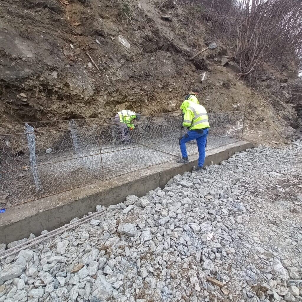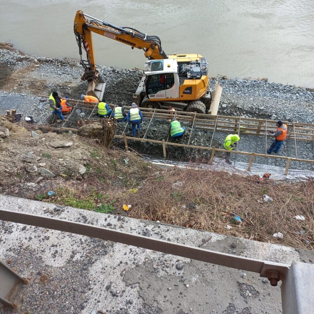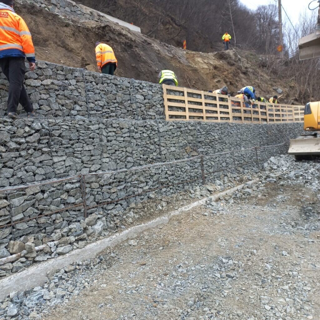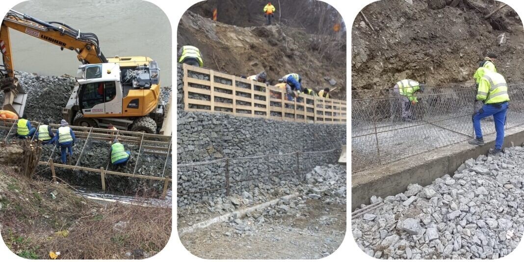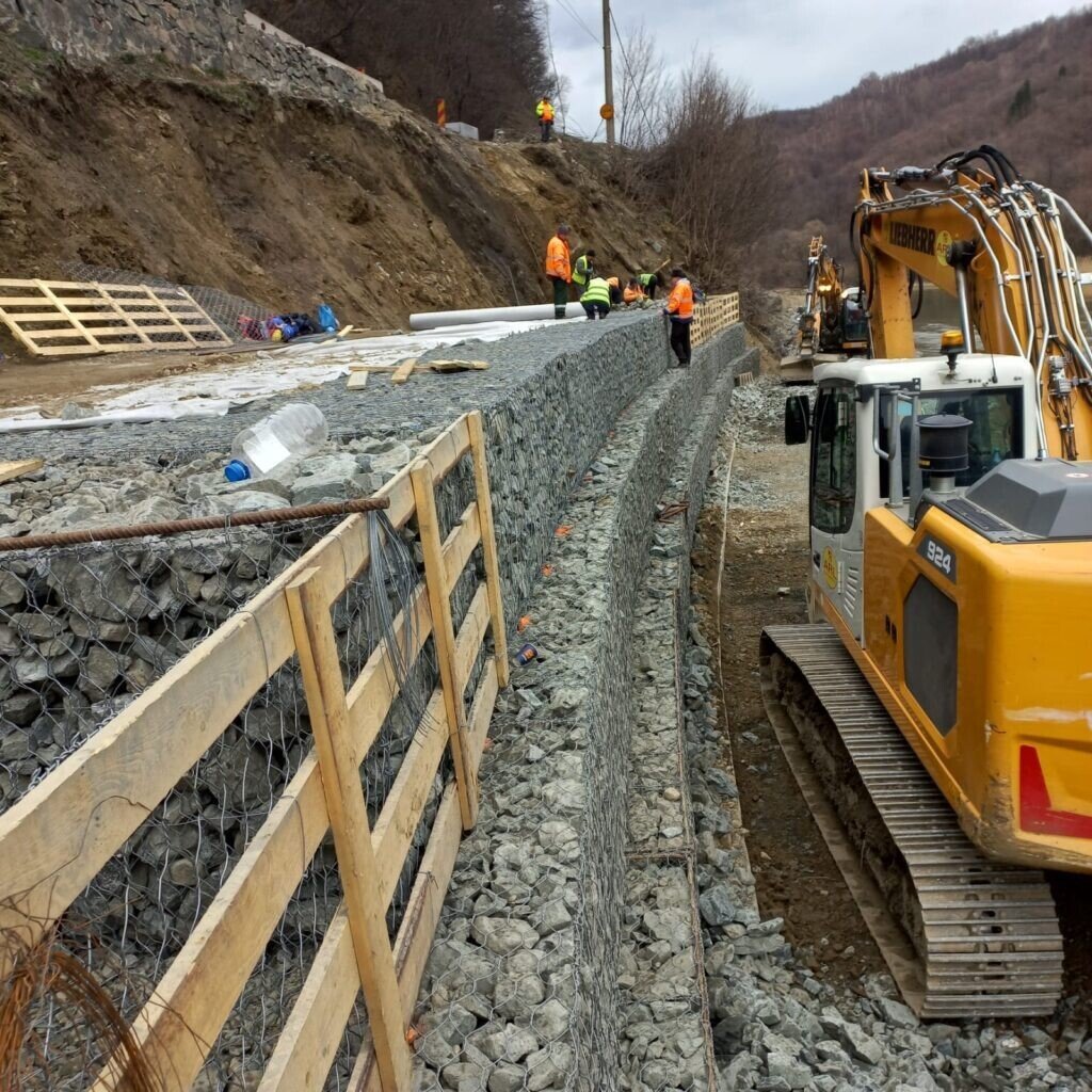 Lucrările de consolidare de pe DN7, din zona Boța – județul Sibiu, au fost reluate în forță! Constructorul lucrează în acest moment la construirea zidurilor de gabioane care vor proteja în viitor corpul drumului de apele Oltului.