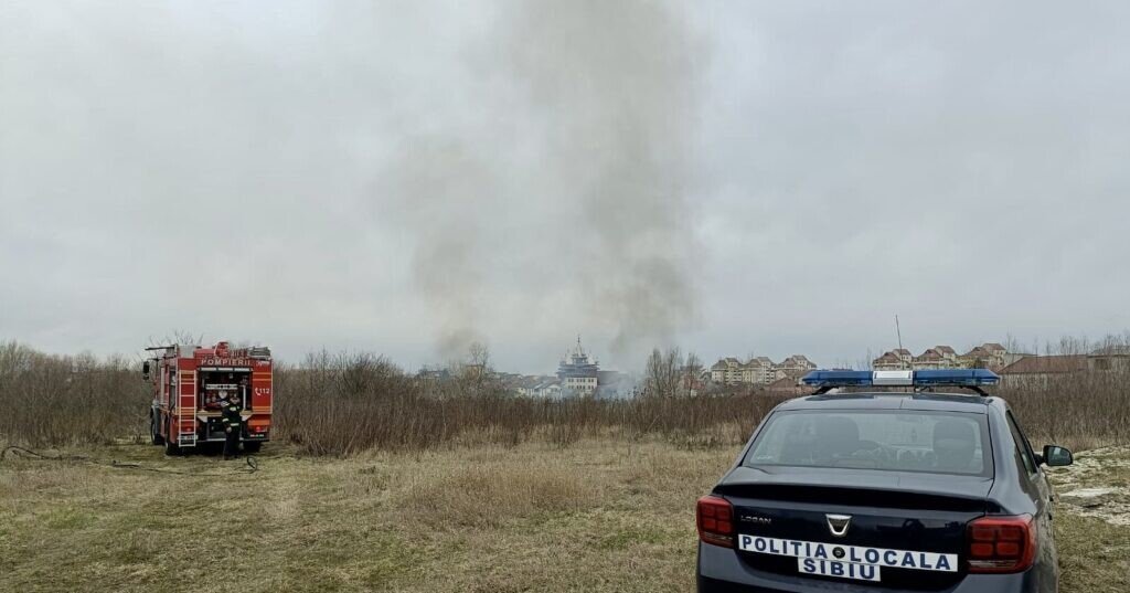 La fața locului a sosit și un echipaj al Poliției Locale Sibiu ce au pornit în căutarea celor care au pornit focul. Până în acest moment, focul a mistuit aproximativ un hectar de miriște.