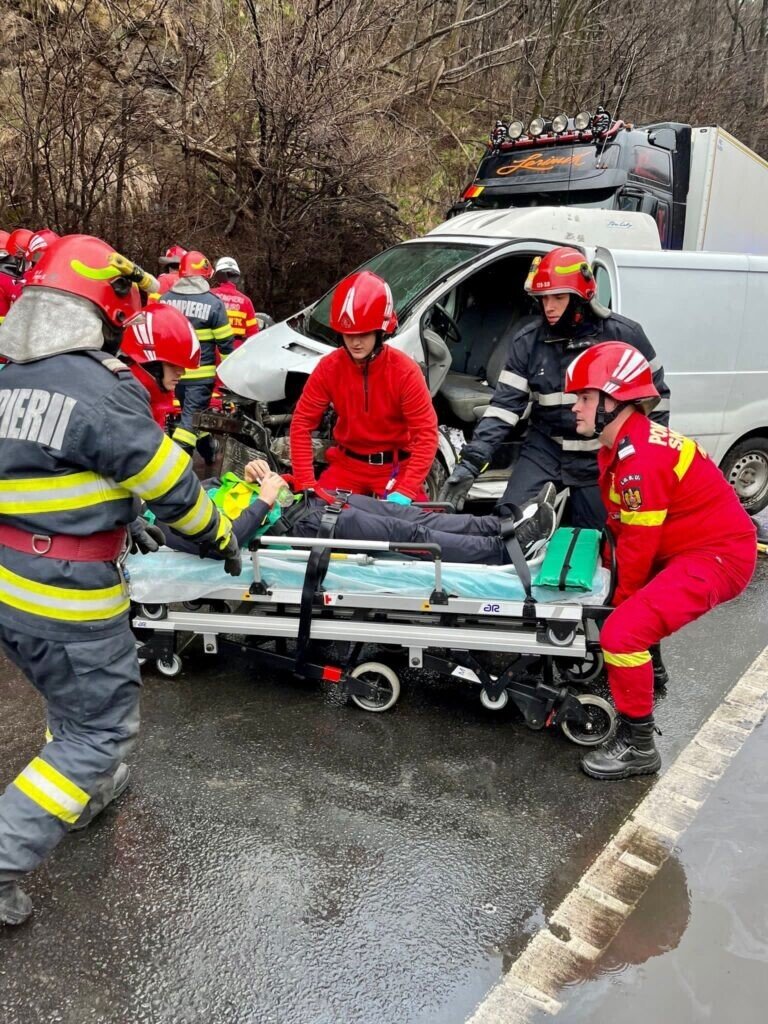 Mai multe echipaje de prim-ajutor și pompieri ISU SIBIU intervin de urgență la evenimentul rutier petrecut la o distanță de aproximativ 2 kilometri după ieșirea de pe autostrada Sibiu- Boița. Din primele informații, mai multe persoane sunt rănite.