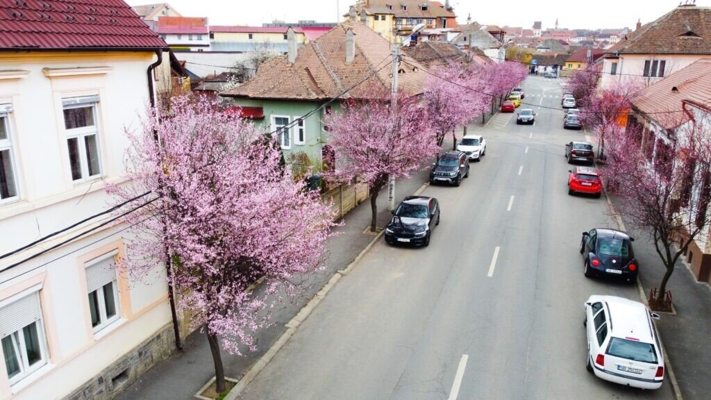 Strada Tudor Vladimirescu din Sibiu este vizitată, an de an, de sute de oameni. Aici, primăvara ne oferă o promenadă de poveste, sub coroana înflorită a copacilor.