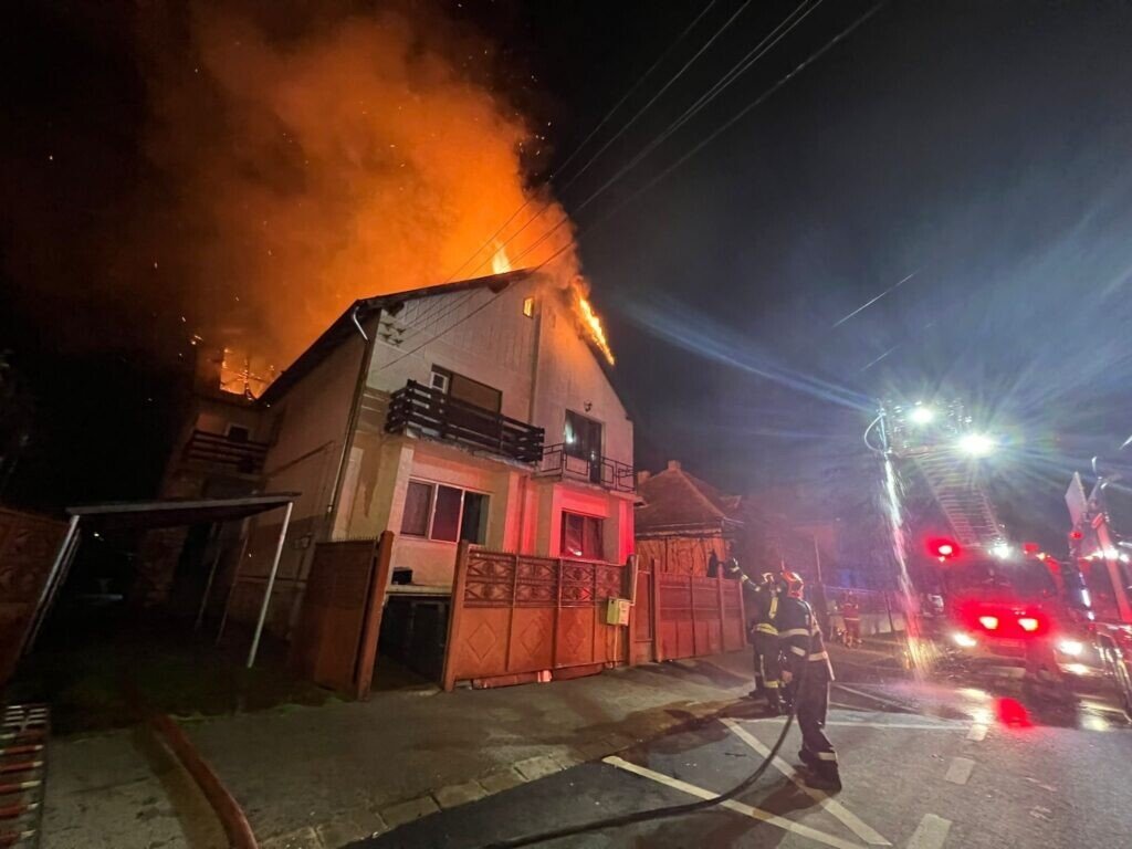 Conform ISU SIBIU, o casă cu mansardă a fost cuprinsă rapid de flăcări, la fața locului intervenind două autospeciale de stingere cu apă și spumă, o autospecială de intervenție și salvare la înălțime, o autospecială de descarcerare, o autospecială de primă intervenție și comandă și două echipaje SMURD dintre care unul cu medic.