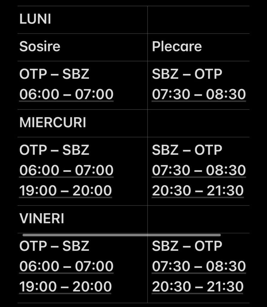 Începând de astăzi, 27 martie 2023, Sibiul este conectat direct de București cu un număr de cinci frecvențe săptămânale în zilele de luni, miercuri și vineri, astfel:
