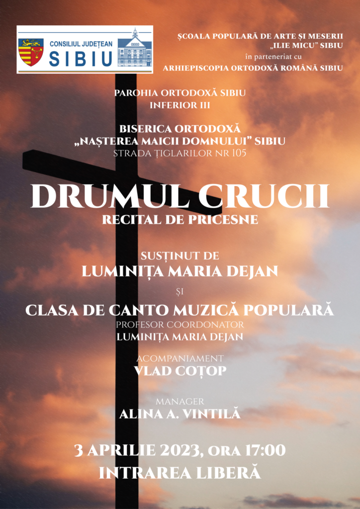 Consiliul Județean Sibiu, prin Școala Populară de Arte și Meserii „Ilie Micu” Sibiu, în parteneriat cu Arhiepiscopia Ortodoxă Română Sibiu, organizează, în săptămânile dinainte de Paște, mai multe concerte de pricesne:
