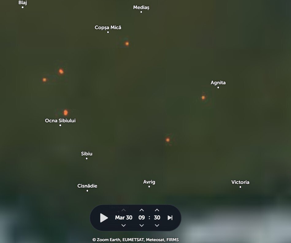 În era digitală și cu acces public la sateliți, situația în județul Sibiu în ultimele zile, la incendii de vegetație arată altfel. Conform siteului Zoom Earth care oferă și imagini ale incendiilor din satelit, punctele roșii, radiante de căldură, din județ, din aceleași trei zile raportate de ISU Sibiu, sunt mult mai multe. Altfel spus posibilele incendii de vegetație au fost mai multe decât cele la care au intervenit pompierii.