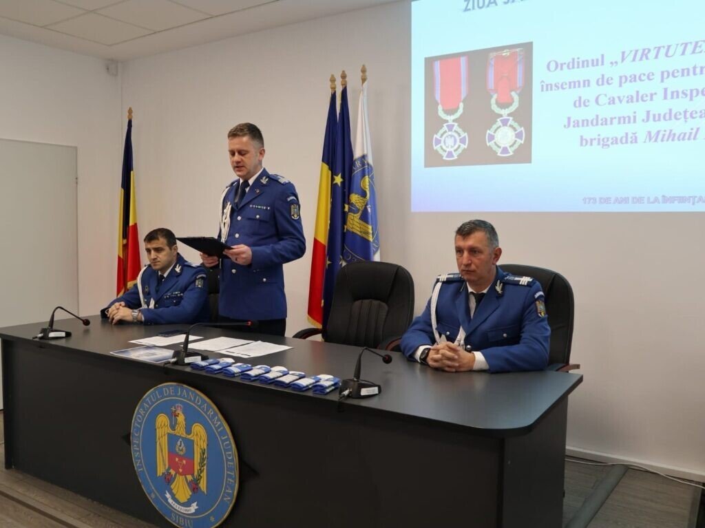 În contextul sărbătoririi Zilei Armei, la nivelul Inspectoratului de Jandarmi Județean Sibiu a fost desfășurată o activitate festivă la sediul instituției, prezidată de domnul colonel Dan Ion, șeful Serviciului Ordine și Siguranță Publică, cu prilejul căreia 11 cadre militare au fost avansate în gradul următor înaintea expirării stagiului minim, iar 66 de cadre militare au fost recompensate cu citare prin ordin de zi, diplome de merit, felicitări și mulțumiri pentru profesionalismul și responsabilitatea cu care și-au îndeplinit atribuțiile de serviciu.