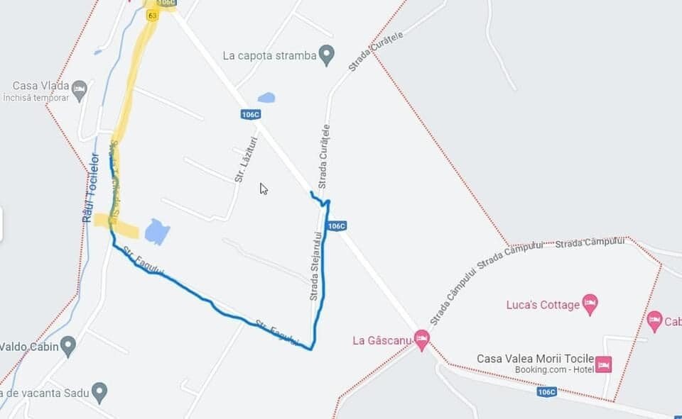 Ieșirea în DJ 106C a riveranilor se poate realiza pe traseul: