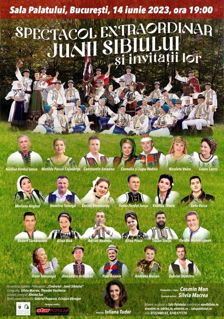 În 14 iunie, ora 19, cel mai vechi ansamblu folcloric al României susține un spectacol de excepție la Sala Palatului din București, sub genericul „Junii Sibiului și invitații lor”. Dinamism, diversitate și culoare sunt cuvintele cheie ale show-ului pregătit de artiștii sibieni, alături de nume de prim rang ale folclorului românesc.
