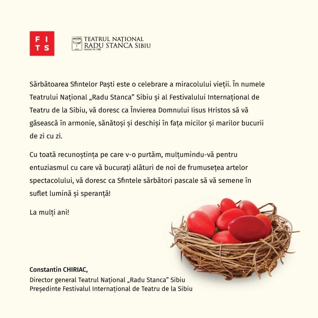 De asemenea, Teatrul Național „Radu Stanca” Sibiu a pus în vânzare și biletele pentru toate reprezentațiile din lunile mai, iunie și iulie, programate la Sala Mare TNRS, Fabrica de Cultură – Construcții SA – UniCredit, Sala Studio, Centrul Cultural Habitus și la Sinagoga Mare.