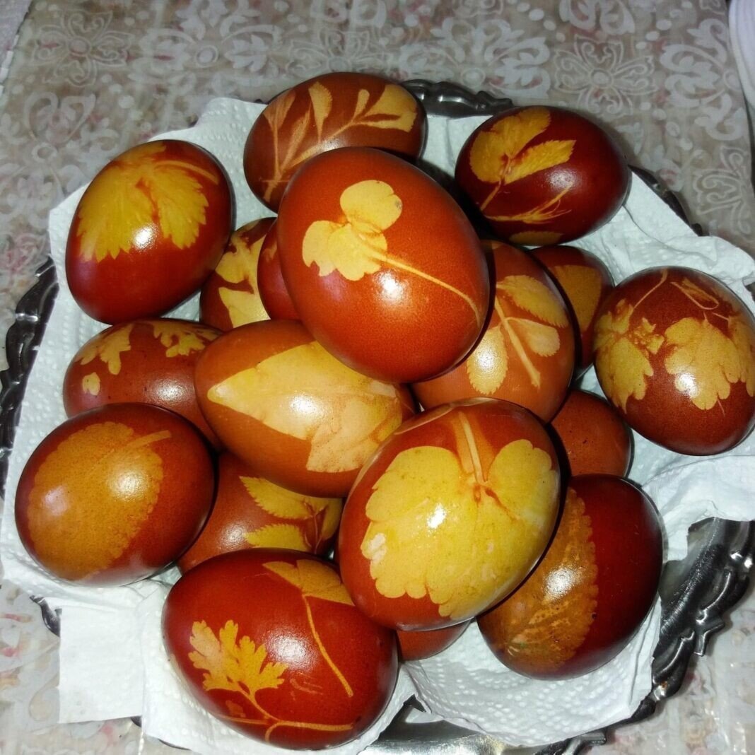 În Joia Verde se înroșesc ouăle pentru Paști, în coji de ceapă roșie, pe care gospodinele le-au strâns de la începutul Postului Mare. Acestea se decorează cu frunze de trifoi, coada şoricelului, leuştean, salcie, trandafir sau urzică.