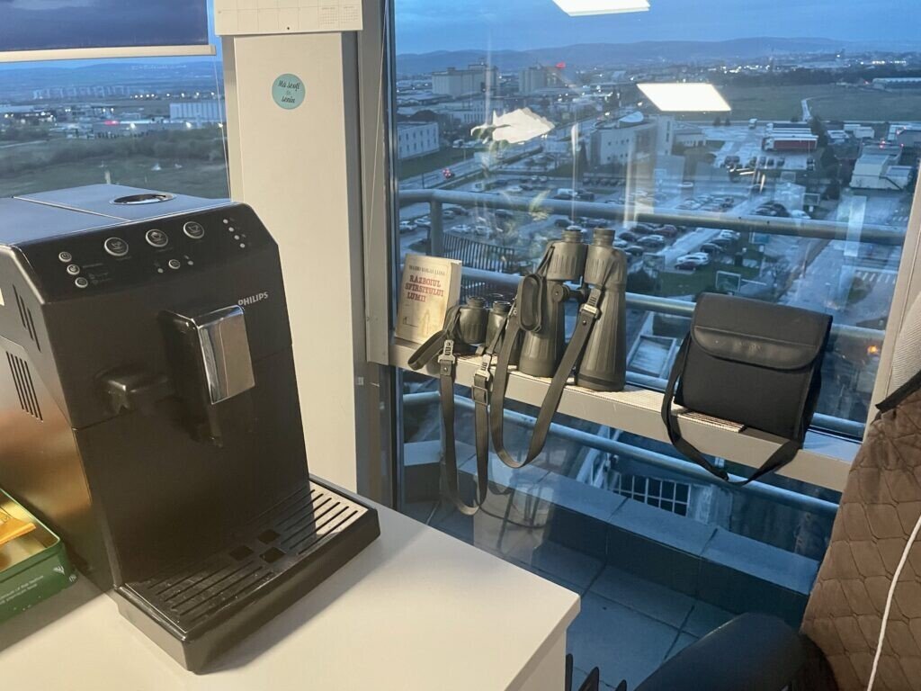 Încă de la primii pași în turnul de control, am fost întrebați daca servim o cafeluță. Pentru că aici, curg „râuri, râuri” de cafea, mai ales în tura de noapte. Ca în orice job de noapte, la un moment dat, oboseala își spune cuvântul.