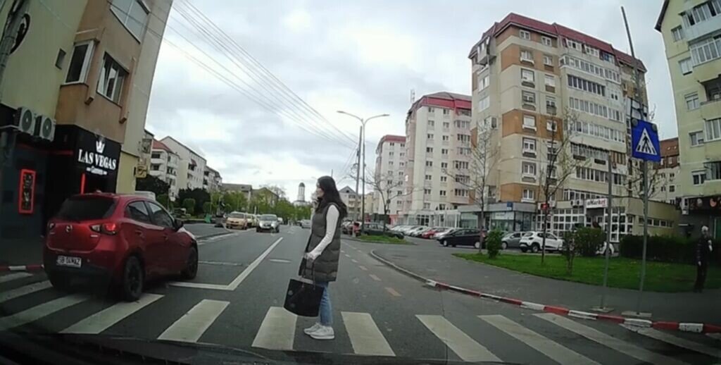 Scena s-a petrecut în cartierul Valea Aurie din Sibiu, acolo unde, o tânără traversa regulamentar strada pe trecerea de pietoni. Deși o altă mașină era oprită pentru acordarea de prioritate, șoferul unei mașini de culoare roșie a depășit neregulamentar pe trecere, forțând tânăra să se oprească brusc și bineînțeles, șocată. Autoturismul filmat este înmatriculat în județul Sibiu.