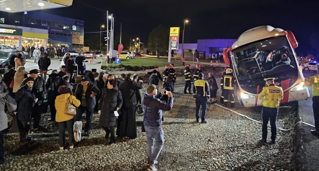 FOTO: Călători evacuați dintr-un autocar la Alba Iulia. Se putea răsturna!