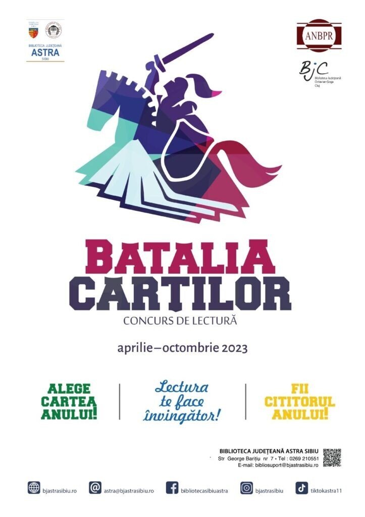 Biblioteca Județeană ASTRA Sibiu, instituție care se bucură de susținerea financiară a Consiliului Județean Sibiu, organizează pentru iubitorii de literatură o nouă ediție a Concursului național de lectură „Bătălia Cărților”, în perioada lunilor aprilie-octombrie 2023. Cea de-a zecea ediție a „Bătăliei Cărţilor” propune pentru acest an o competiție de lectură pentru copii (11-13 ani) și adolescenţi (14-18 ani), iar pentru adulți un club de lectură cu întâlniri periodice.