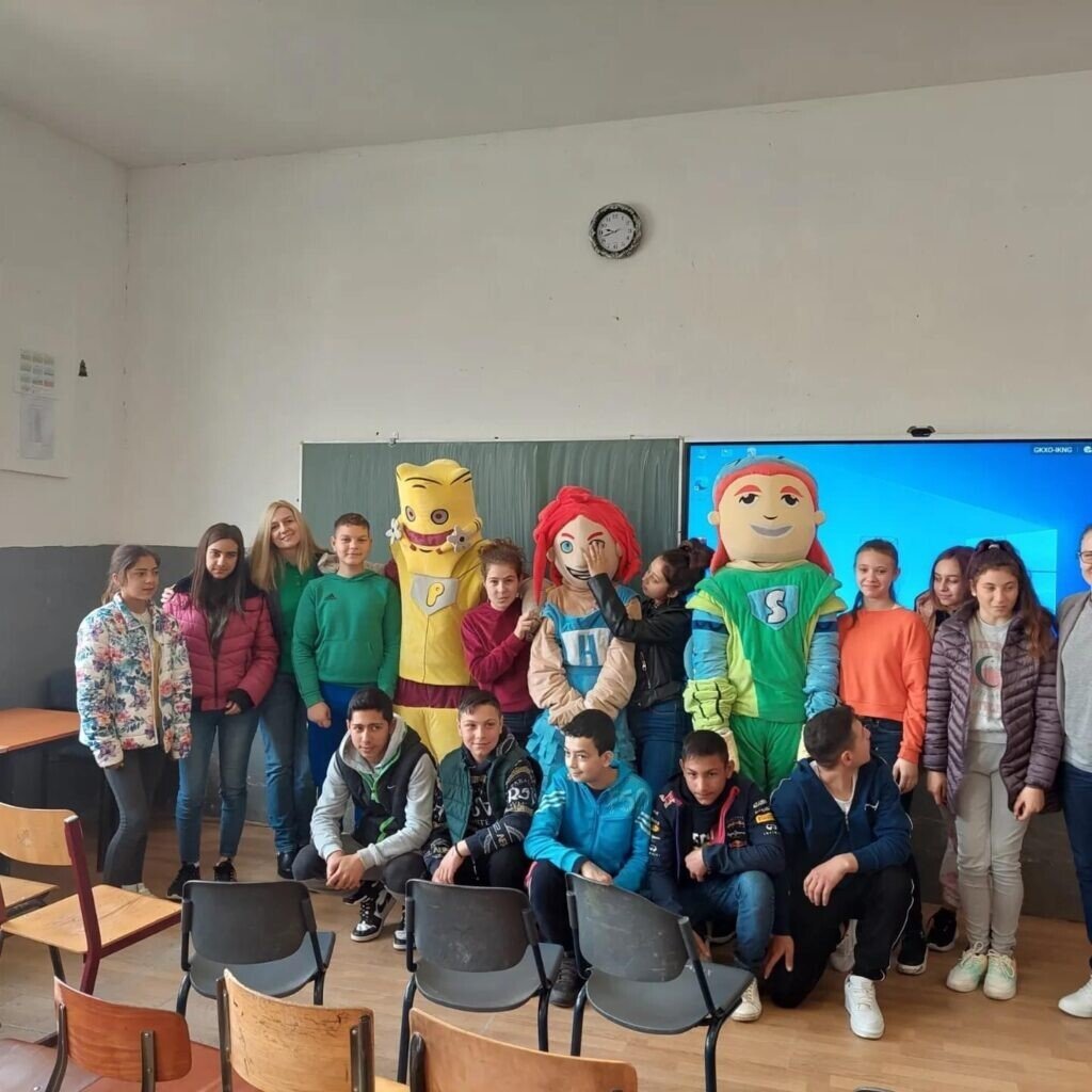 Alături de personajele colectării separate în Sibiu: PetRică, Tanti Rezi, BioRel, Mărie-Hârtie și Miticlă, le-au povestit copiilor despre importanța colectării separate a deșeurilor, reciclarea bateriilor, colectarea electrocasnicelor vechi, contribuția la diminuarea cantității de plastic și nu numai.