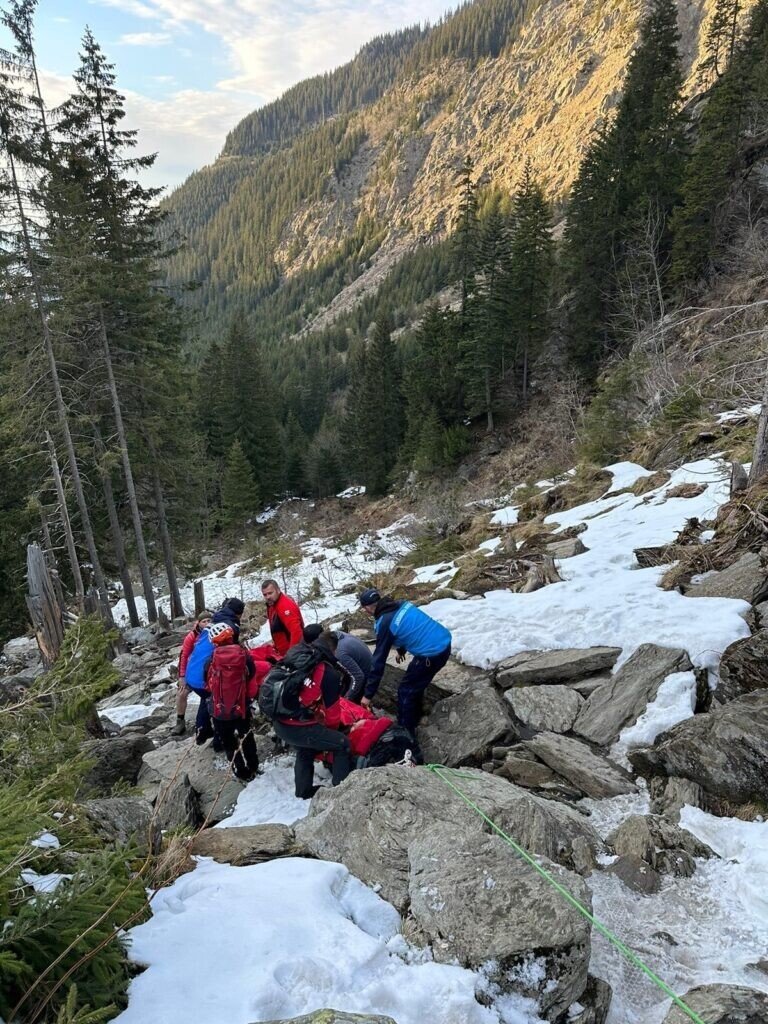 Salvamontiștii sibieni au intervenit astăzi, în zona Cascadei Bâlea, pentru a oferi prim ajutorul unei victime care a suferit o fractură deschisă de membru inferior.