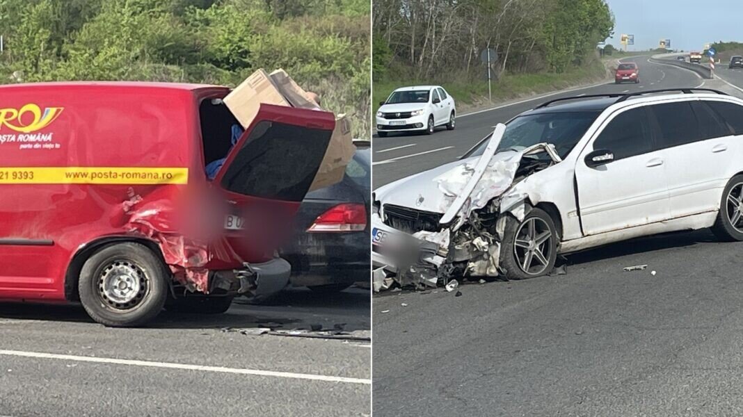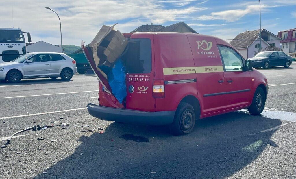 În accidentul rutier au fost implicate o mașină și o furgonetă ce aparține Poștei Române. În urma impactului, ambele vehicule au suferit avarii importante iar unele colete au ajuns pe carosabil. Din fericire, nimeni nu a fost rănit.