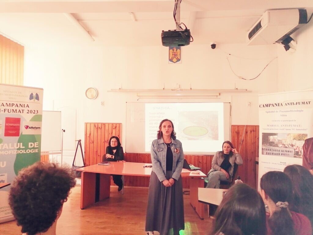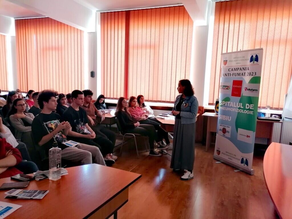 Aproape 100 de elevi din clasele a IX-a, a X-a și a XI-a au participat la o acțiune organizată de Spitalul de Pneumoftiziologie Sibiu, reprezentat de medic pneumolog, Oana Mețiu și Centrul Antidrog Sibiu, prin specialist în prevenire, Consuela Ghidiu.
